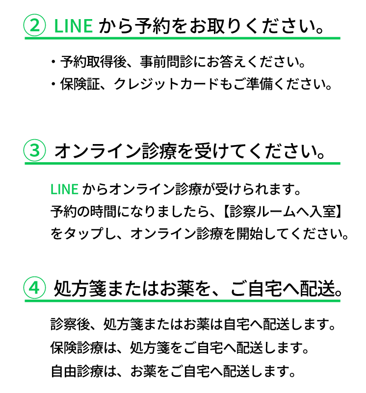 オンライン診療は、感染リスクの軽減や、通院時の移動や待ち時間にかかる負担を軽減することができます。